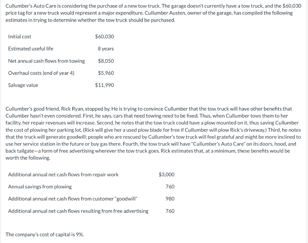 Solved Cullumber S Auto Care Is Considering The Purchase Of Chegg Com